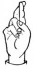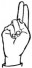 На ћирилици написано ХРАНИМИР ДУЊИЋ састоји се из 13 слова [?]. Исписано ћириличном једноручном азбуком за глувонеме: